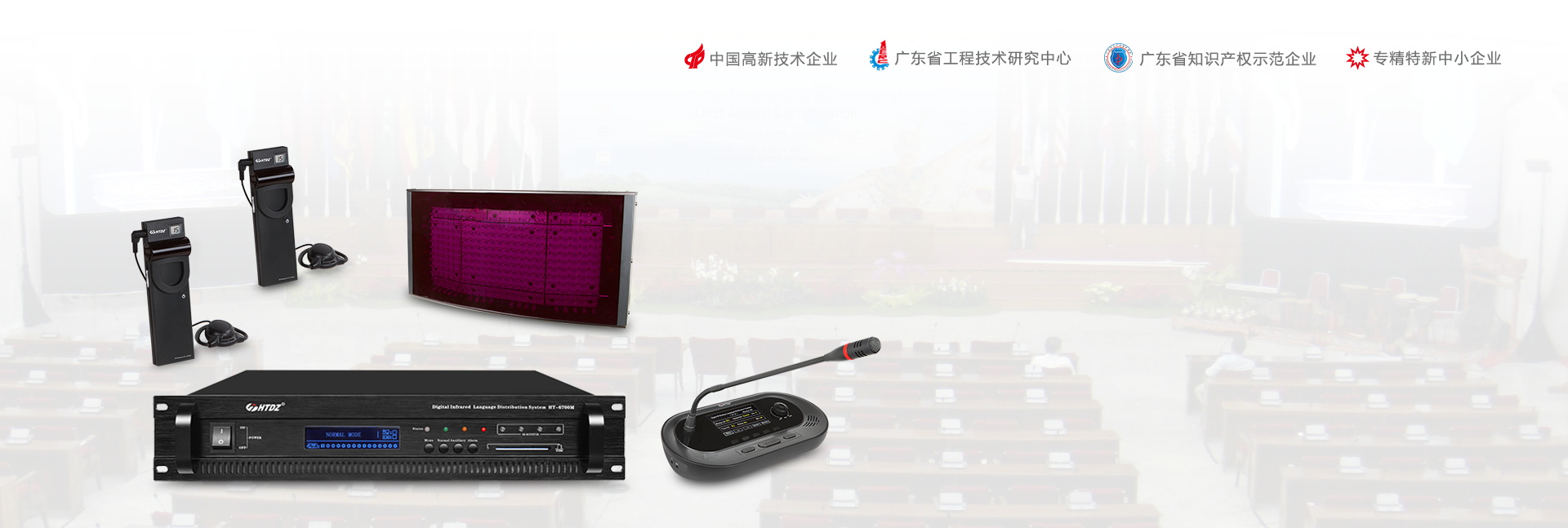 紅外線會議系統 紅外線同聲傳譯系統 無紙化會議系統 觸摸屏/視頻會議系統 電子桌牌 無線數字表決系統 有線數字表決系統 多功能數字會議系統 輕便式會議系統 自動跟蹤視像系統